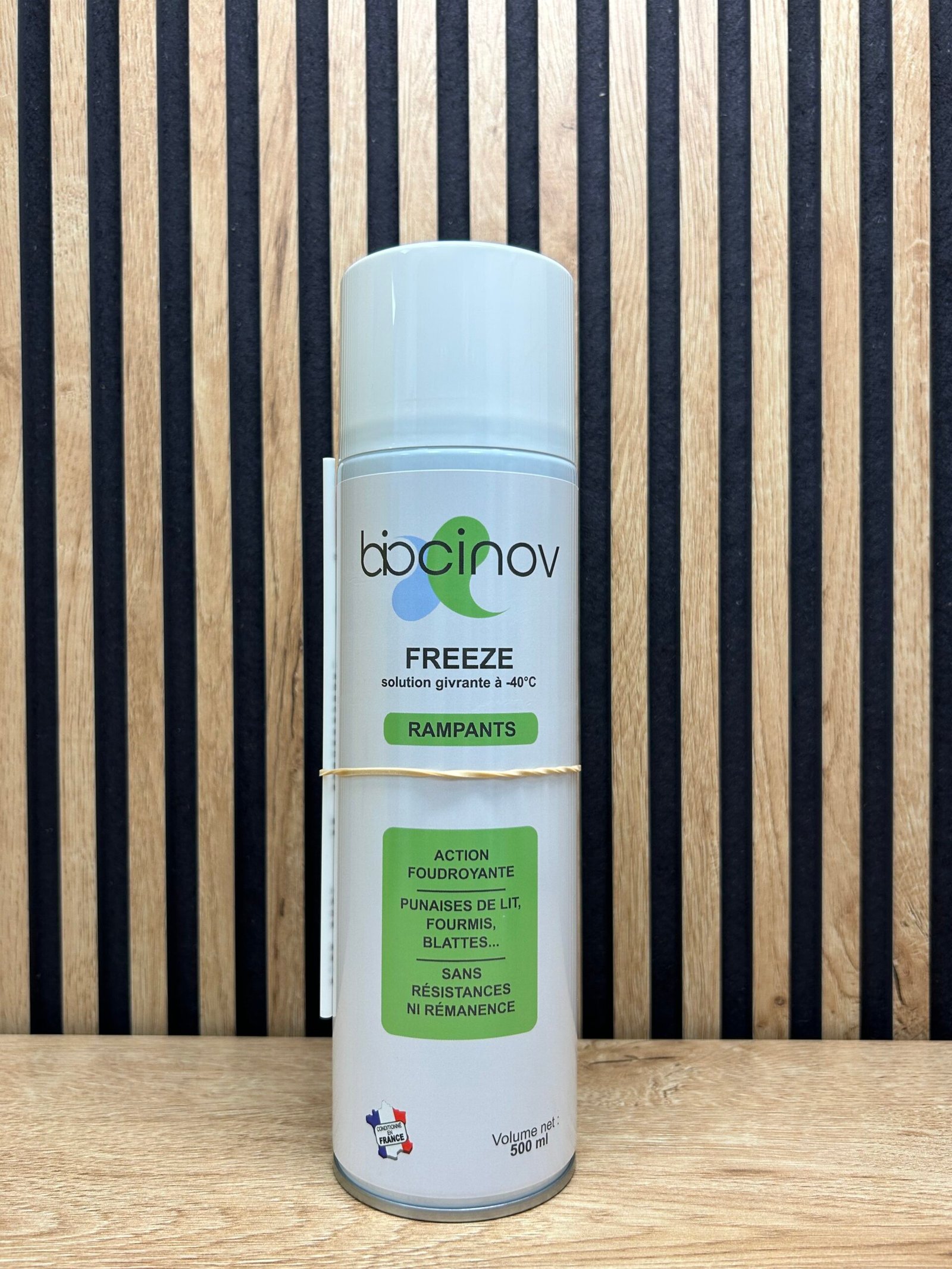 Cet aérosol Freeze est une solution d’élimination foudroyante des insectes par l’effet du froid, grâce à un jet en sortie de l’aérosol de -40°C. Sans aucun principe actif, son action ne connaît aucune résistance ni rémanence. Sa formulation est sans odeur et ne laisse pas de taches sur les supports et murs. Sa formulation en aérosol et son tube prolongateur permettent une lutte ciblée et un traitement dans les interstices peu accessibles (crevasses, fissures…).