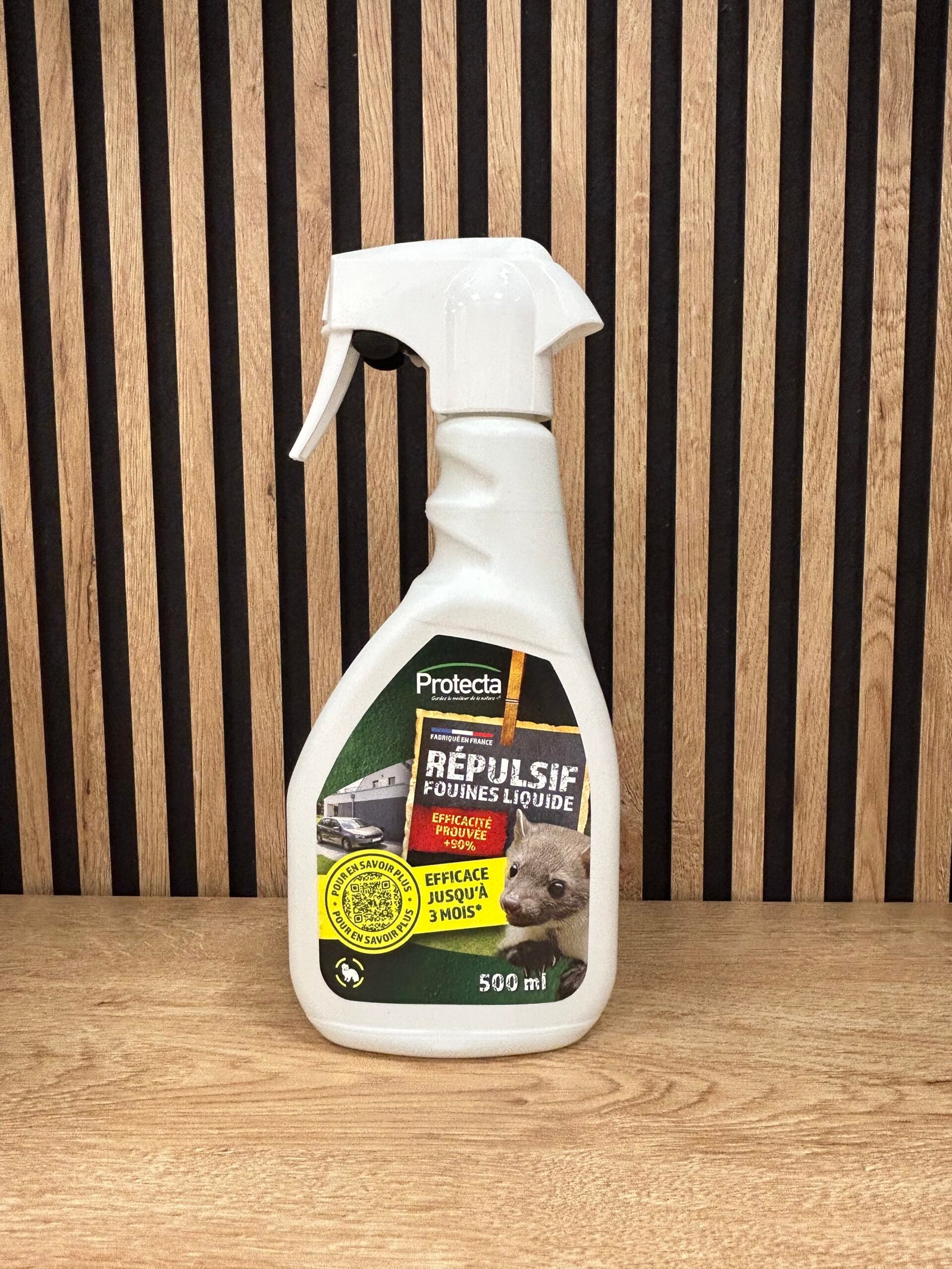 S’applique par pulvérisation. Les fouines sont incommodées par l’odeur, sans risque pour leur santé ou leur bien-être, elles vont délimiter leur territoire ailleurs que dans la zone traitée. Efficace jusqu’à 3 mois.